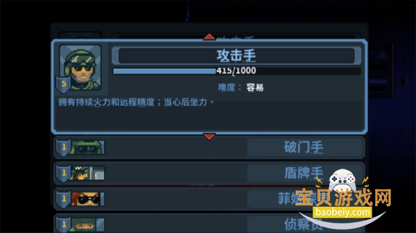 3、盾牌手:可以防御正面枪火和爆炸,比较容易受到近距离的攻击。