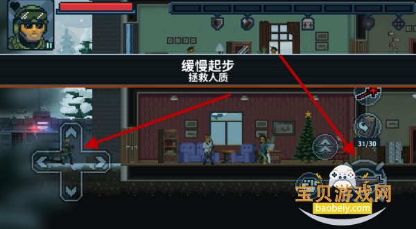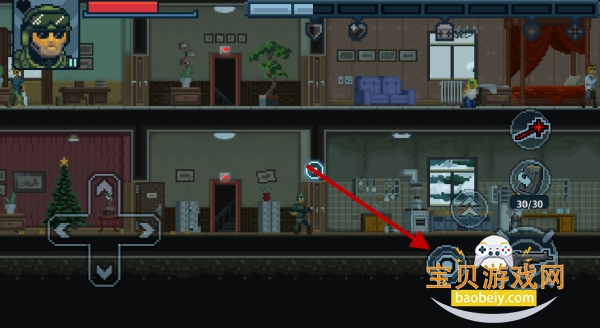4、进入到关卡中后,我们就可以使用左侧的按键进行移动了,点击右侧的枪械按键就可以进行射击。