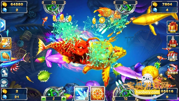 2、超多街机经典,多种酷炫电磁炮,吹响捕鱼集结号!