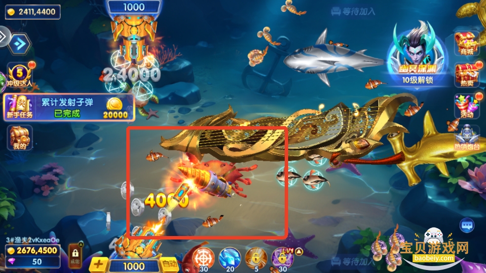 3、对于不同的鱼要找到瞄准角度,这些经验很多高玩都有分享经验,不同的鱼有不同的进攻技巧,更多的经验、技巧还需要在实战中总结归纳。
