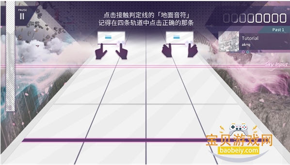 这里我们点击开始游戏,这里有新手教程,这里点击接触判定线的地面音符,记得在四条轨道中点击正确的那条;