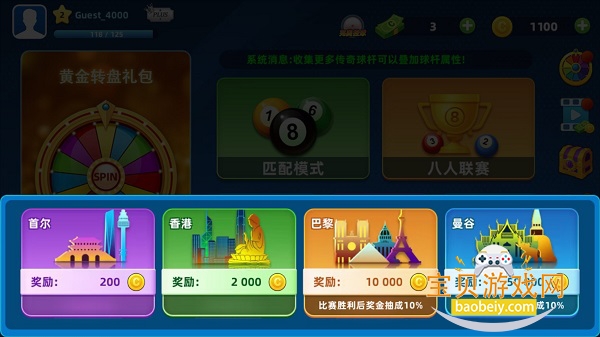 2.实时对战竞技玩法:通过匹配系统快速匹配全球玩家,支持1v1经典对决与8人淘汰赛模式;对战时可自主选择不同城市赛场,入场费与奖励梯度不同,满足从休闲娱乐到高强度竞技的多元需求。