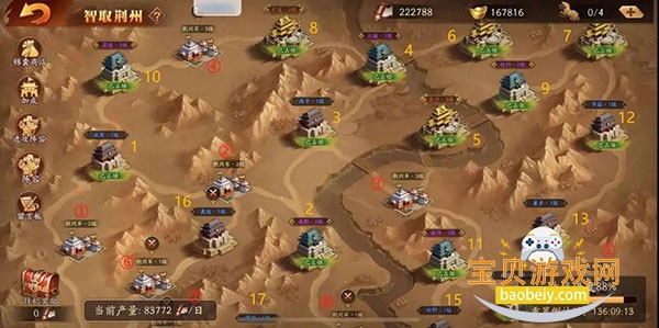 还剩下16和17只能明天再打,各位看官可以结合自己实力以及每天能买的令牌次数,参考最优路线图,选出最适合自己的路线,总而言之,第一天尽量打城,少走有军营的路线,靠打城的buff来攻克下面的城镇。