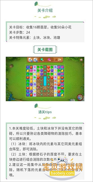 触摸屏幕把三个颜色相同的图块连城一天直线,即可消除。达到指定目标就过关,剩余的步数会随机激发特效,获得金币。 [4-5]每过一关就可获得一颗星星,累积星星,在用星星换取花园资料资源,不断的解锁花园设施,还可以根据自己的喜好装饰花园,并迎接未知的曲折丰富的故事情节。