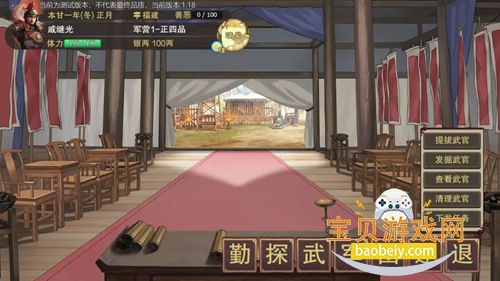 2、作为一个菜鸟,想要在残酷的战场上活下来,那么就需要好好的锻炼自己的武功,当然不能仅仅满足于此,不想当将军的兵不是好兵!只有刻苦学习兵法和吸取实战经验,才能让自己全方位的提高,才能配得上武将的职称!