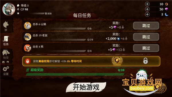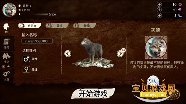 你是强大的灰狼吗?豺狼?还是神秘的黑狼最符合你的性情?解锁全新皮肤、选择你的最爱并培养独一无二的性格