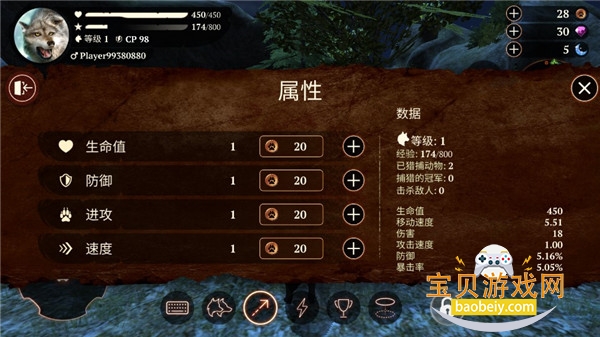 作为一款RPG游戏,《狼族》的养成系统非常重要。玩家不仅可以自由自定义狼的外形,如毛色、体型等,还可以通过战斗和狩猎提升狼的属性,包括生命、攻击、防御等。通过不断成长,狼王的战斗力会逐渐增强,让玩家在面对更强大的敌人时游刃有余。
