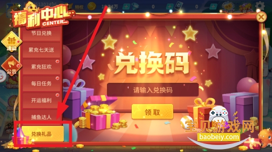 2、玩家来到游戏首页之后,点击下方的福利,来到福利中心,找到最下方的兑换礼品。