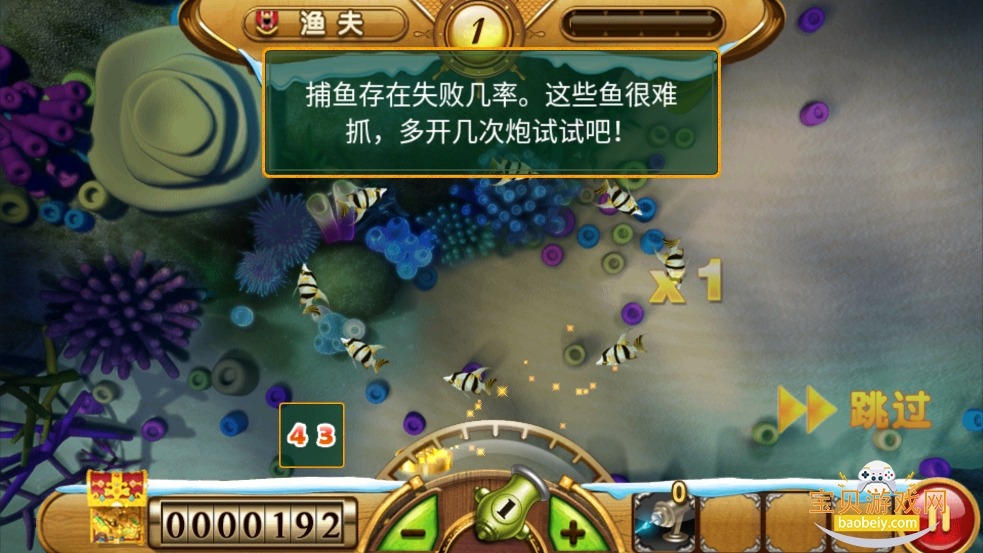 2、捕鱼存在失败几率。这些鱼很难抓,多开几次炮试试吧!