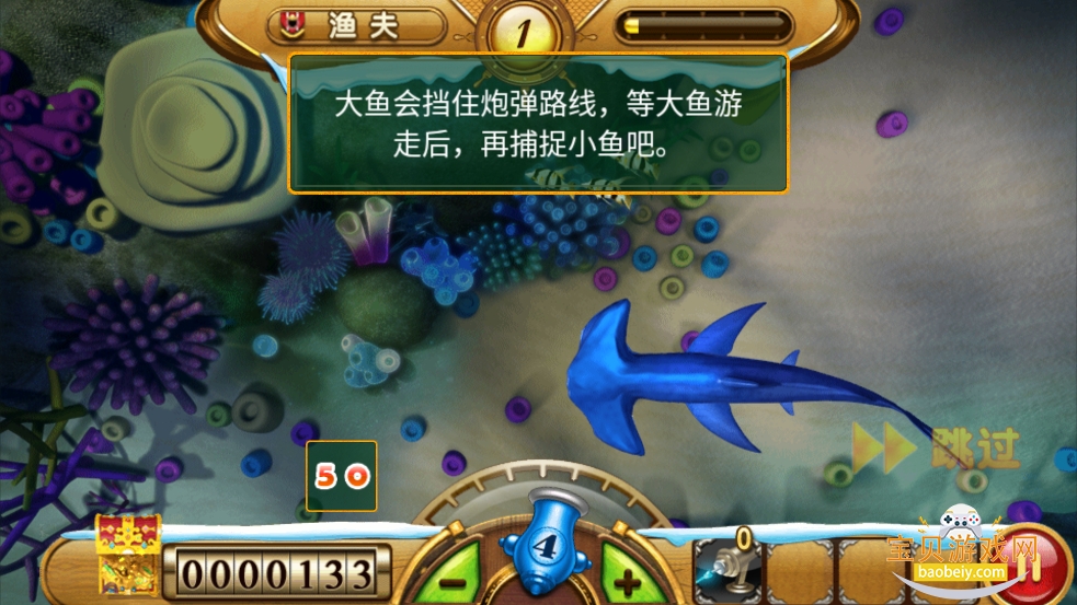 4、大鱼会挡住炮弹路线,等大鱼游走后,再捕捉小鱼吧。