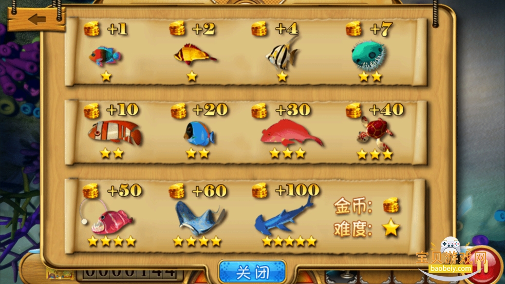 7、不同鱼的分值也是不一样的,玩家可以根据不同的鱼类来调整炮台等级