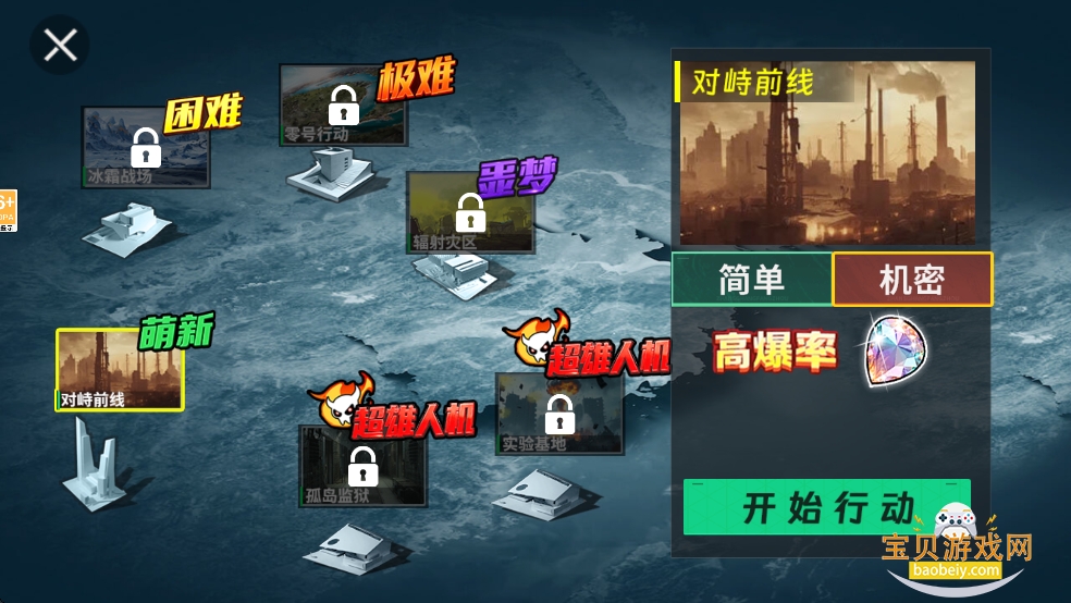 2、选择游戏难度,不同难度,钻石爆率也不同