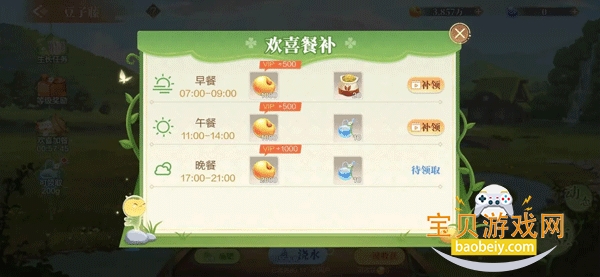 还有在吃早中晚饭期间,上线即可领取免费金豆;就在豆子藤页面左边的任务栏上,错过的小伙伴也别担心,因为可以补领;