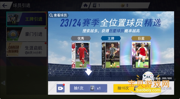 通过王牌引进、豪门引进等方式,全位置球员精选抽取,抽取越多获得巨星球员概率越高,可根据球队阵容短板针对性抽取。