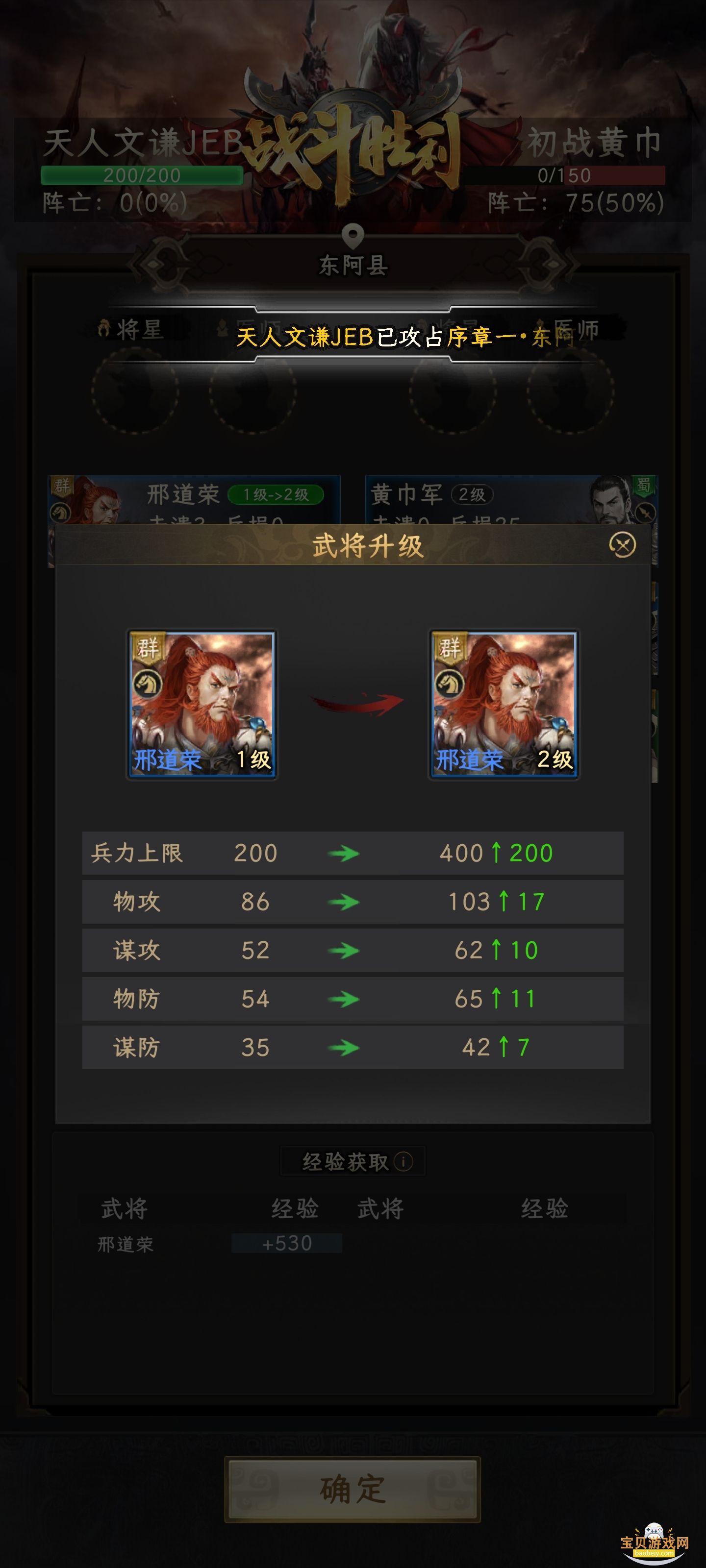1、武将等级:通过扫荡、再战等消耗体力的方式获得,经验多少与战斗敌军的武将等级、总兵力有关;