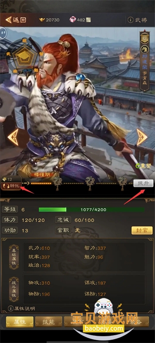 3、技能升级:通过铜币分解武将获得技能点,技能升级能提高技能伤害系数;