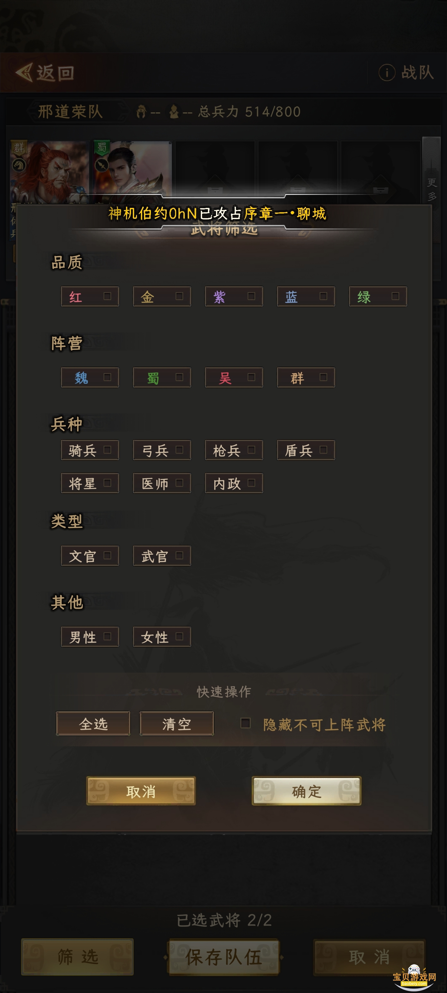 2、一定要带关羽,序章三需要他单挑华雄,需要物攻到1000左右!