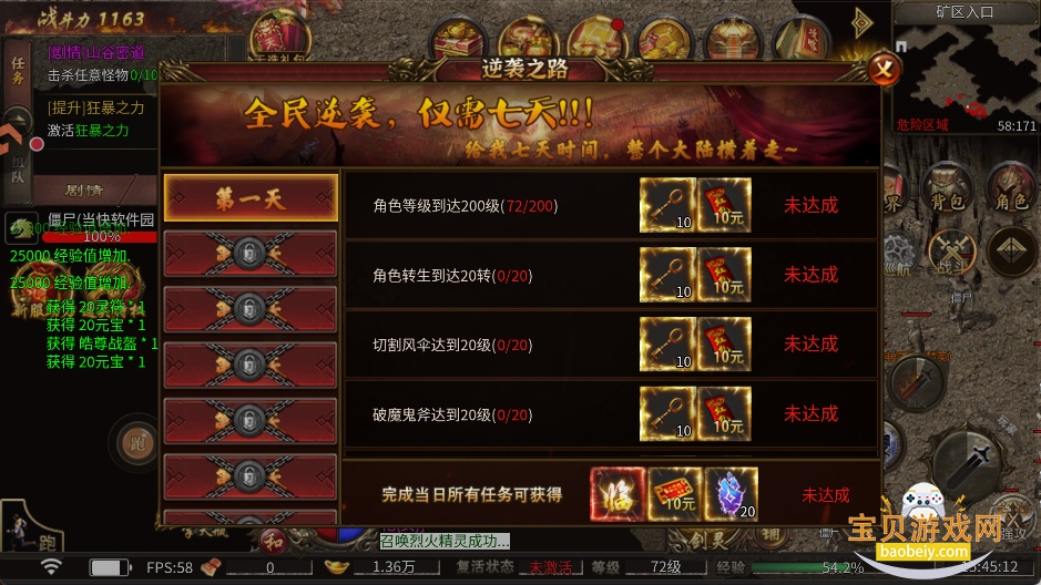 2、逆袭之路任务优先完成,九字真言能涨很多战力,还有刀刀灵符、元宝属性,足以让你前期挂机无忧!
