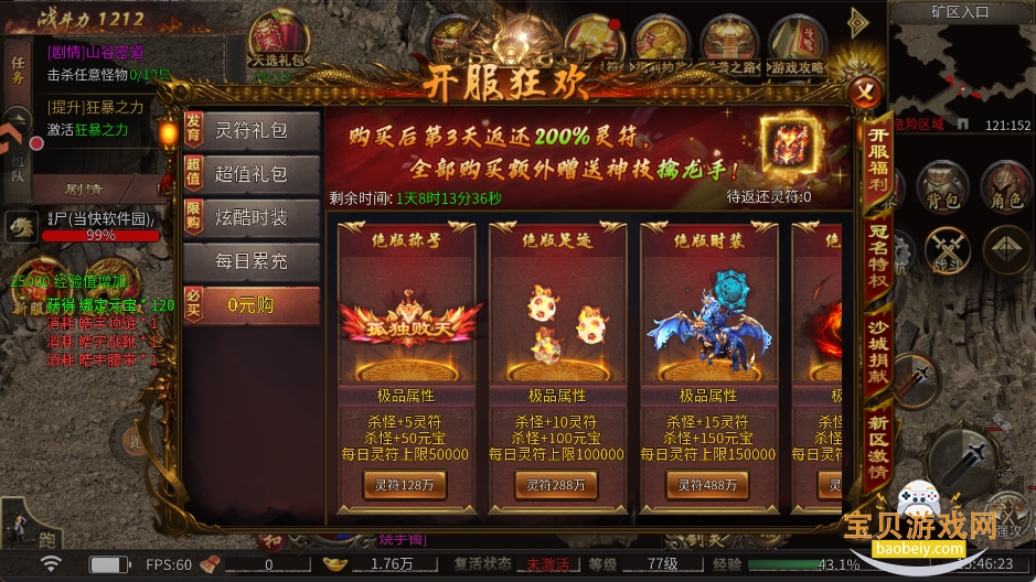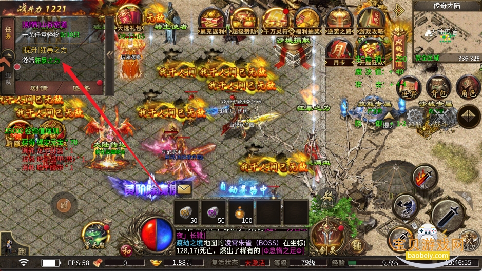 3、攒钱开启狂暴之力,提升大量属性的同时还能大幅提升打怪爆率绝对超值!