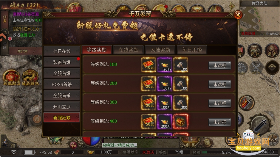 6、限时活动不要错过,白大量灵符、充值卡,发家致富就靠活动。