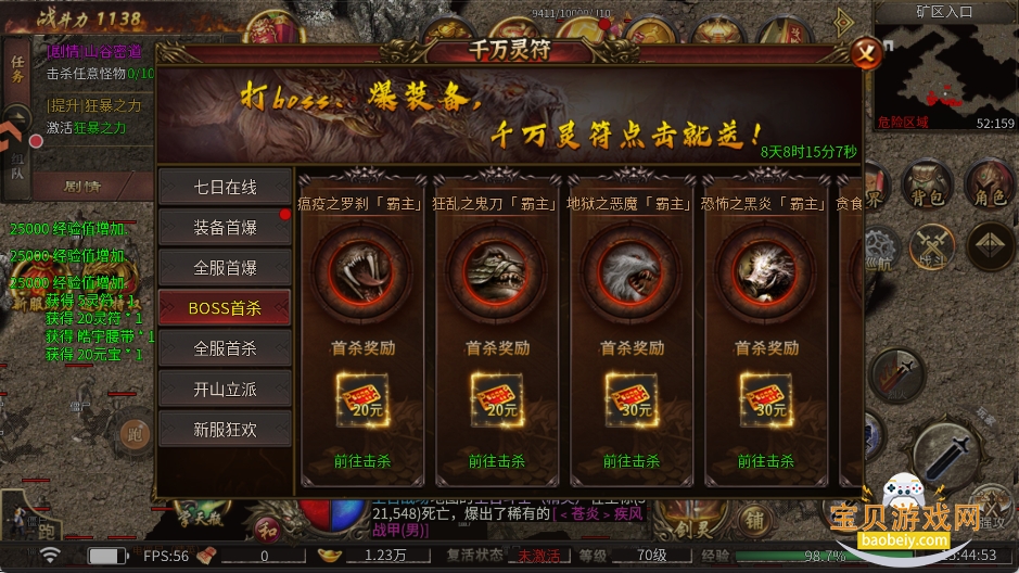 8、BOSS首杀活动一定要做,大量充值卡等你领。