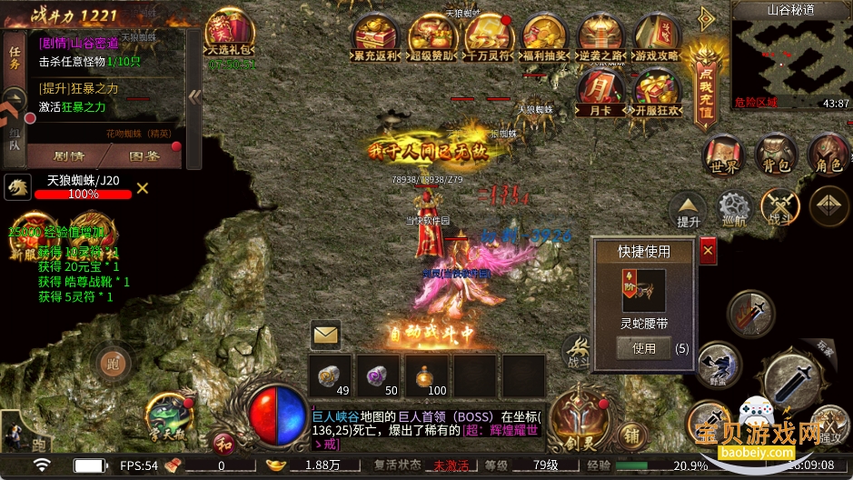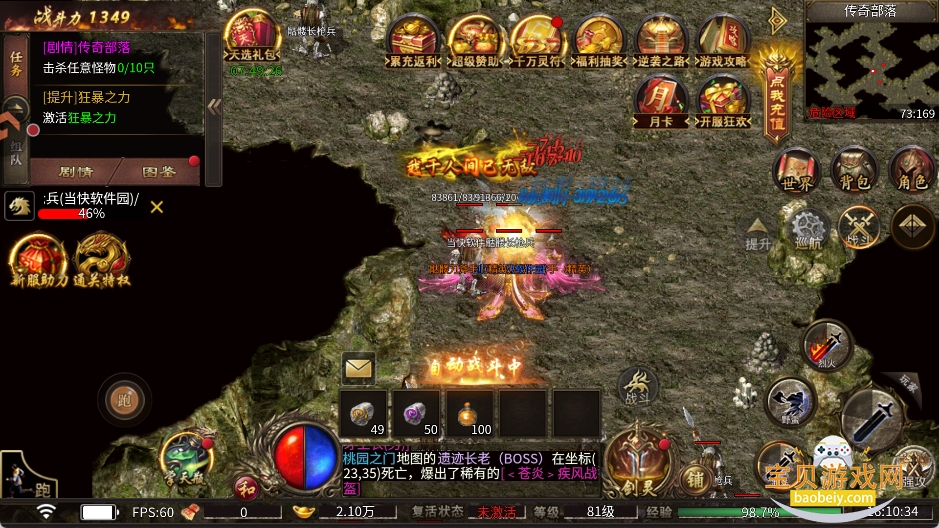 5、新服激情BOSS一定要去参加,全屏掉落拼手速,百万灵符快速起号。