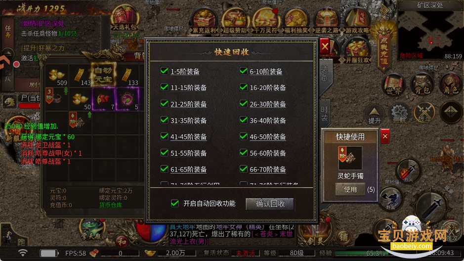 所有怪物都可爆元宝!装备回收也可获得大量元宝。