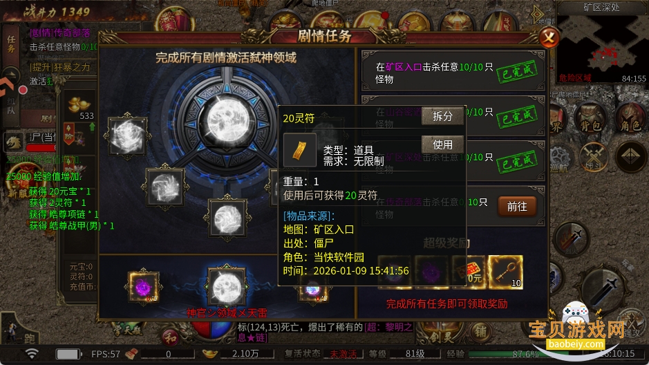 2、打怪爆灵符、充值卡、红包,挂机一夜暴富不是梦!