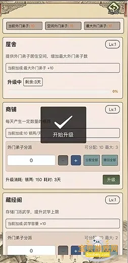 3.升级商铺等等,发展自己的门派。
