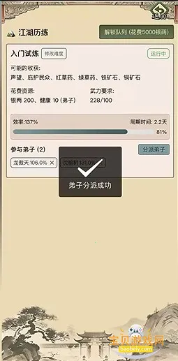 3. 充满变数的江湖历练:派遣内门弟子外出闯荡,挑战难度各异的历练任务,每次江湖之行都可能带回丰厚奖励,助力门派跃升。江湖中各类随机事件不断,每一次选择都影响门派声望与未来发展。