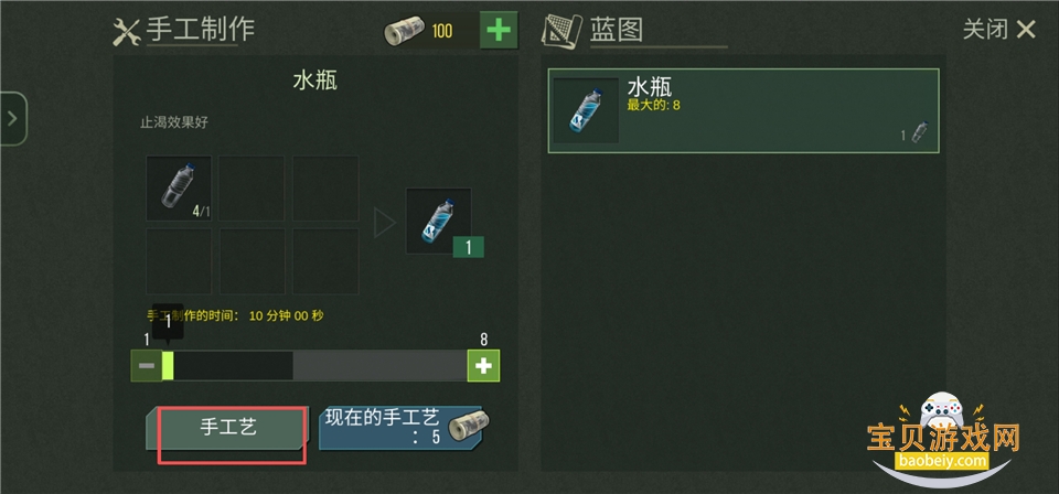 5、点击【手工艺】进行生产水,等待制作完成即可领取。