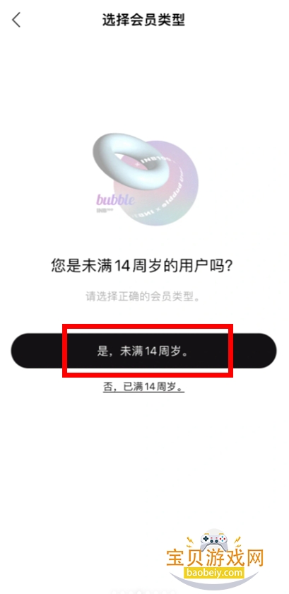 2.打开软件,然后选择已满14岁;
