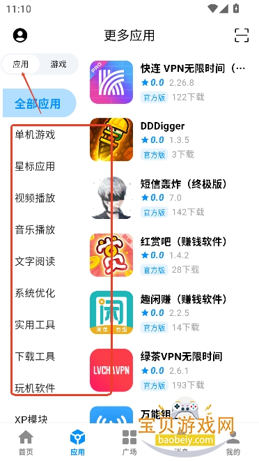 2、切换到软件板块,提供大量软件资源,分类等,可以根据类型筛选喜欢的应用