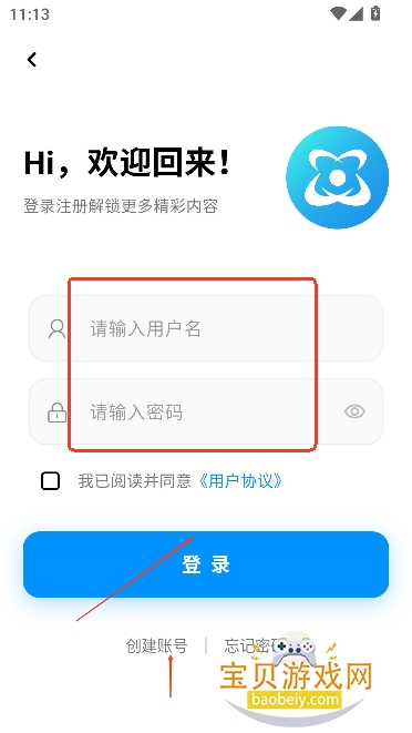 3、或者点击下方创建账号,输入基本信息,完成注册