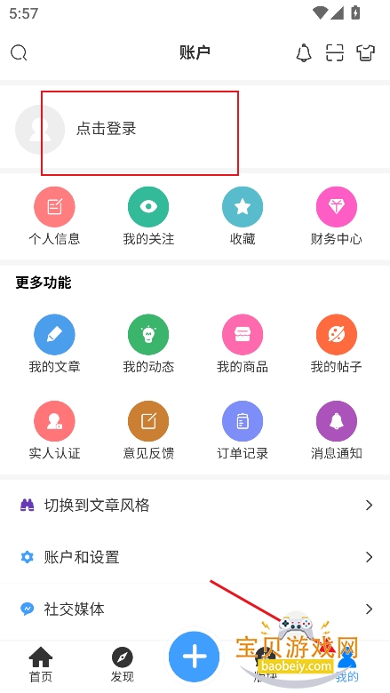 1、进入【我的】界面,点击登录