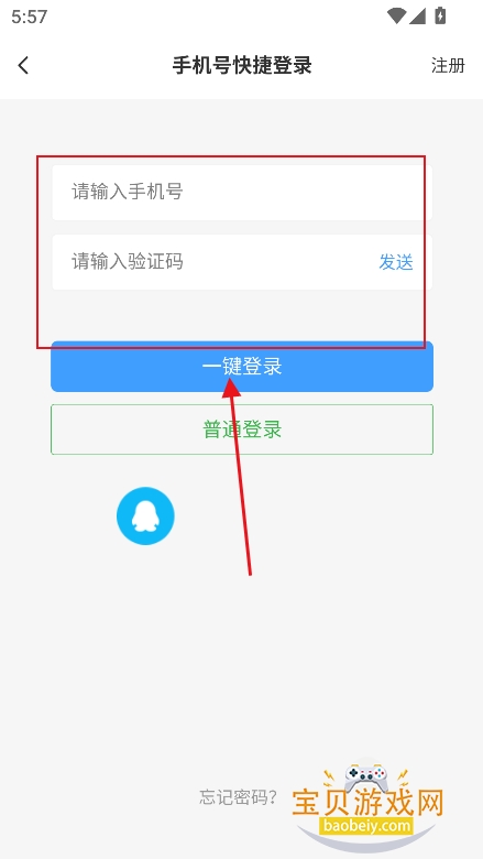 2、输入手机号,接收验证码,点击【一键登录】