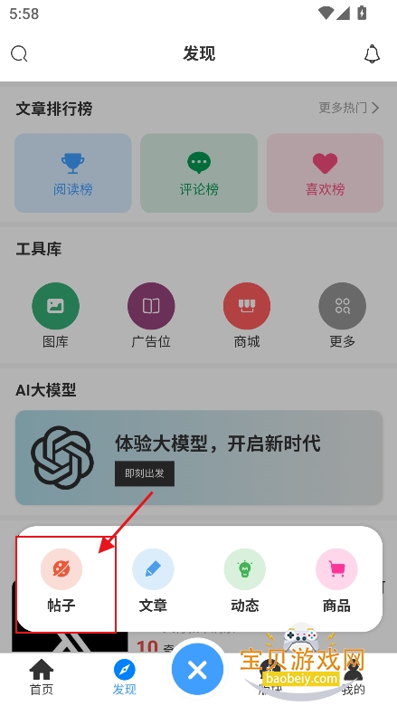 2、在功能栏,点击【发帖】