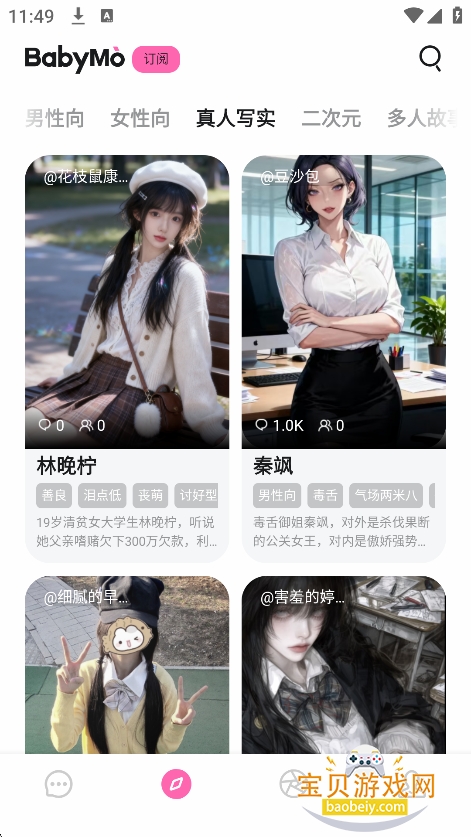 BabyMo下载安装2026最新版,一款ai无限制聊天软件,无禁词,无敏感,是lovemo的平替软件,也是是一款主打高度个性化与沉浸式体验的AI聊天陪伴软件,核心提供虚拟角色深度定制服务,用户可自主定义角色外貌、语音等细节打造专属伙伴。依托无内容过滤的多主题畅聊与场景化互动功能,为用户营造逼真的恋爱陪伴氛围,带来温馨真实的情感交流体验。
