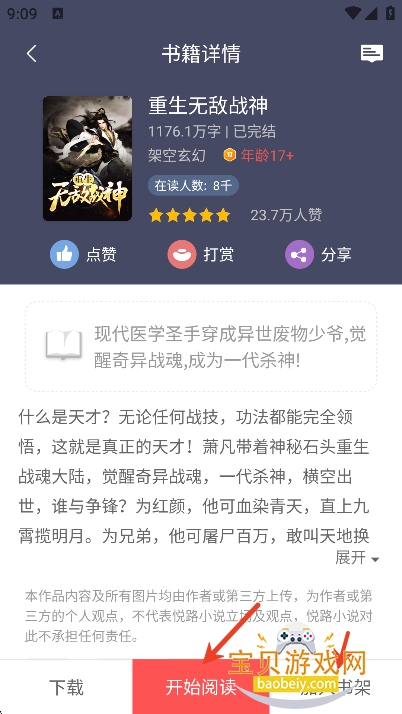 用户们挑选完小说后,可以点击“开始阅读”,开启自己的阅读之旅,也可以点击“加入书架”,把喜欢的小说收藏起来,方便下次继续阅读