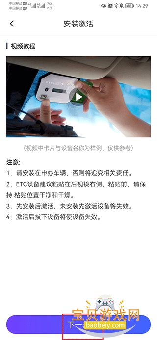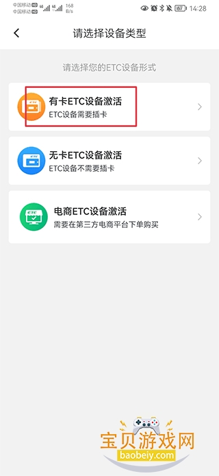 2、选择激活的设备类型,如有卡ETC设备激活;