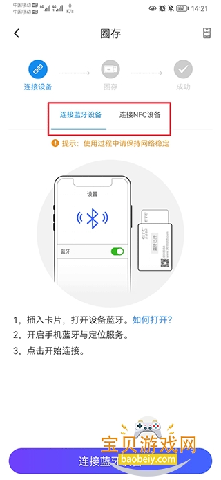 2、根据提示使用蓝牙连接设备或者选择NFC设备连接;