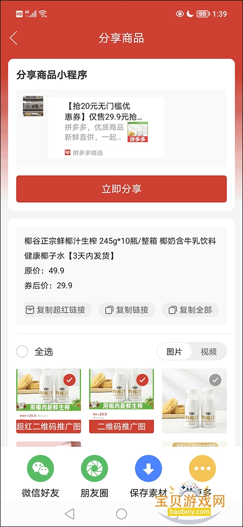 4、接着在分享商品界面找到并点击“立即分享”选项;