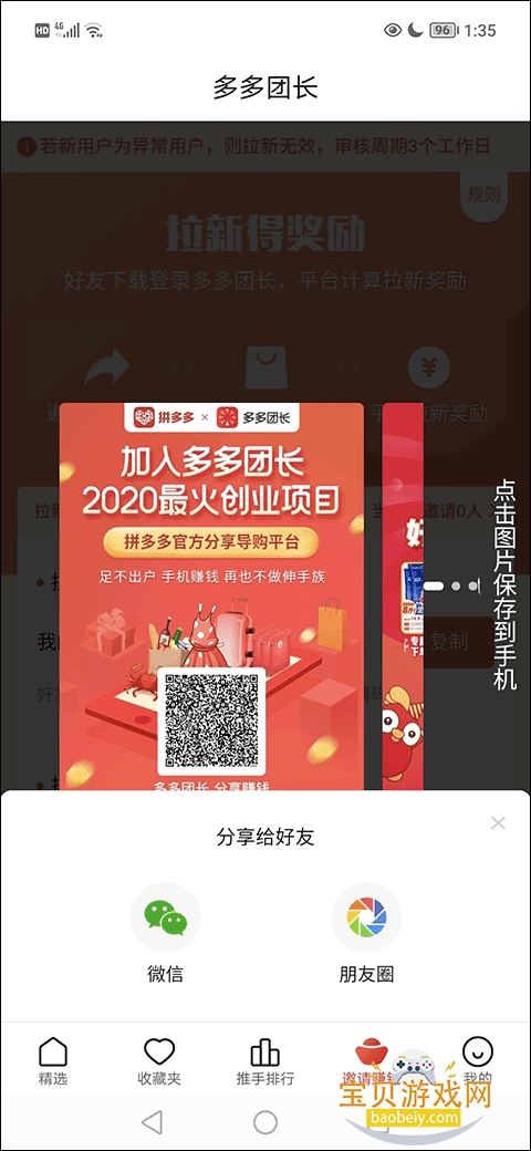 1、首先,打开软件,在邀请赚钱界面找到并点击“分享链接”或“分享海报”选项;