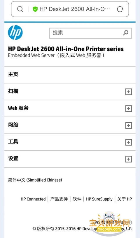 5、进入打印机配置页面(不同打印机的页面也会有差别,小编的例子是惠普)。