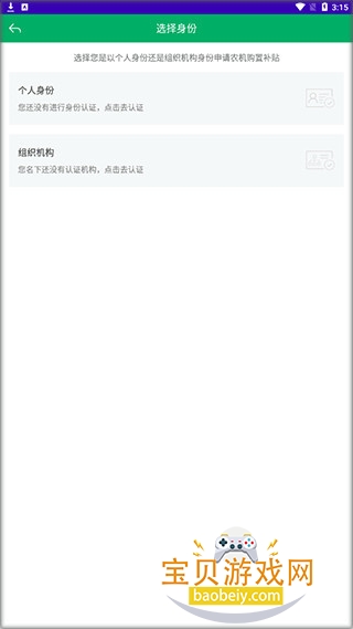 3、选择您的身份,可使用您的个人身份或是进行组织机构认证。