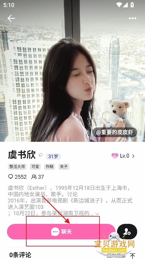4、进入角色界面,点击【聊天】
