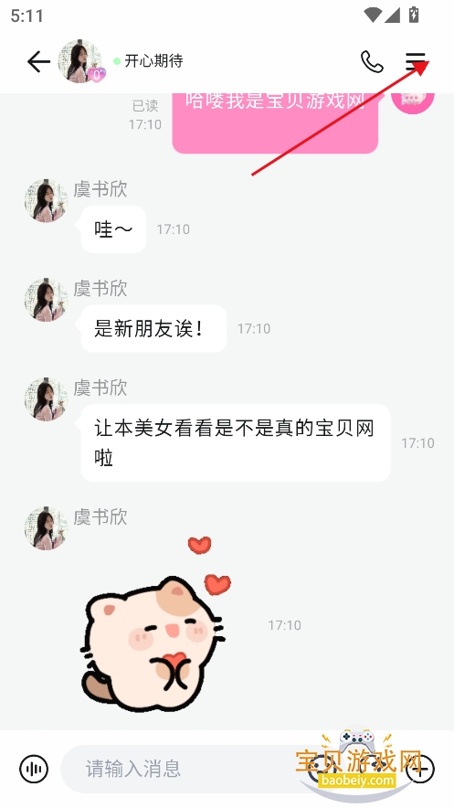 6、在对话界面,点击右上角三杠