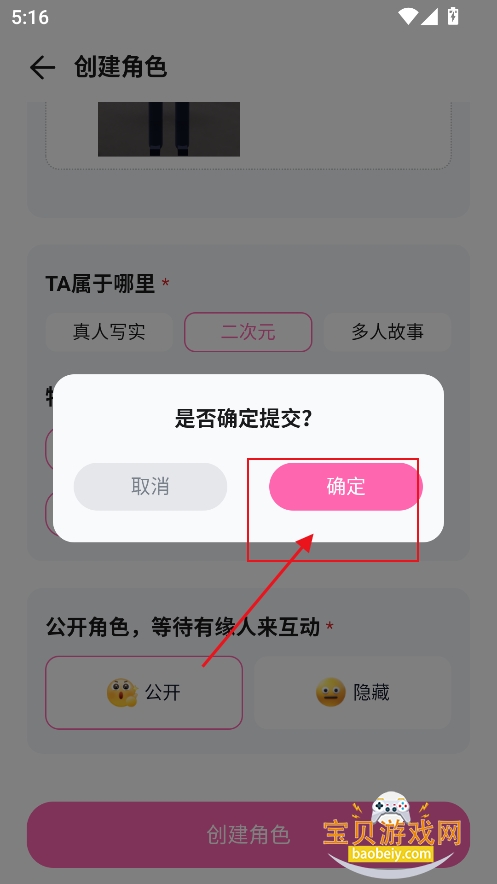 6、添加角色形象,点击【确认】