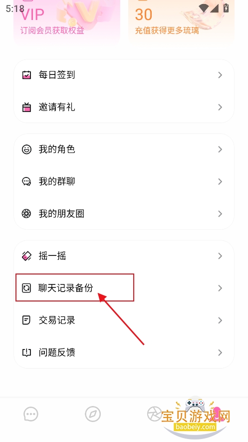 1、进入我的界面,点击【聊天记录备份】