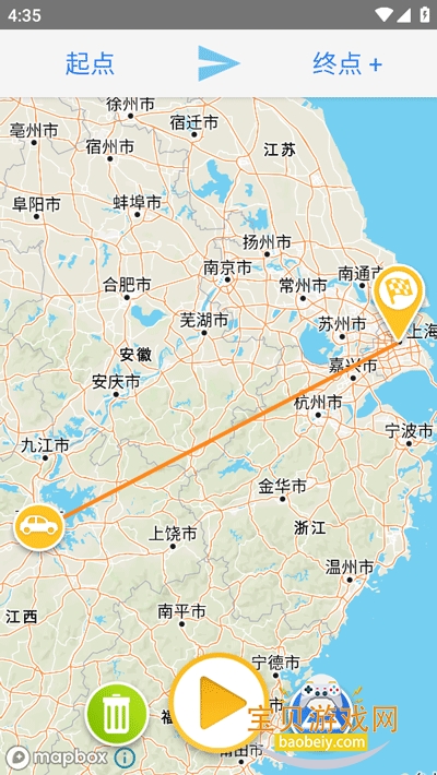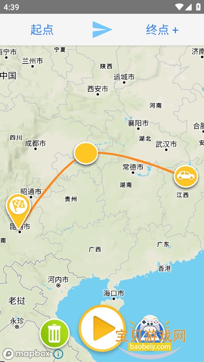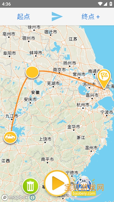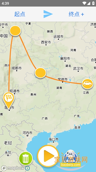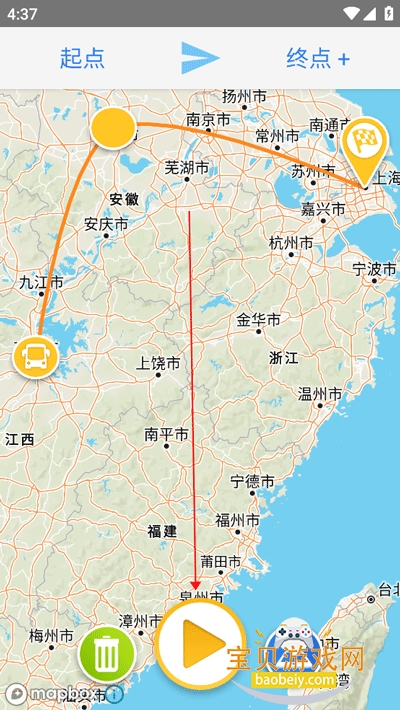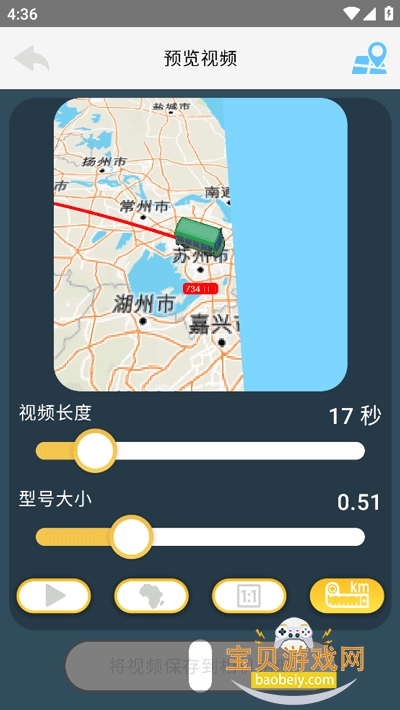4、设置好途经点和交通工具后,点击中间的播放按钮即可预览轨迹视频